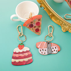 Personalised Sweet Strawberry Cake,sushi,Pizza Girls Bag Charms Keychain Pink Cake Shaped Cute Keychain Wholesale